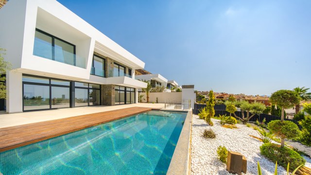 3 exclusieve high-tech villa’s met panoramisch uitzicht op de zee en de stad in een luxe urbanisatie Sierra Cortina (Benidorm).